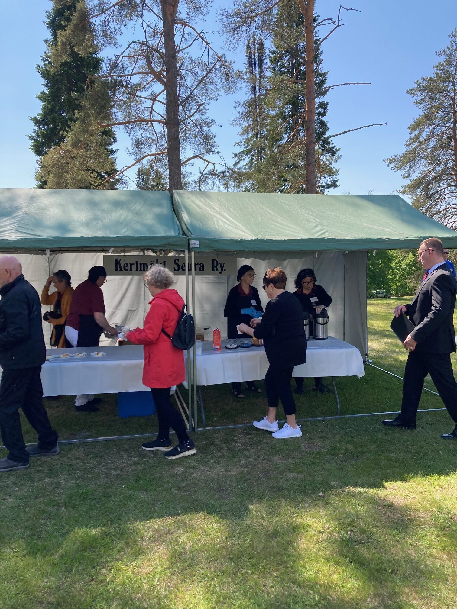 Lomarauhan julistus ja kirkonjuhla kokosi noin 400 henkilöä kirkonmäelle. Kerimäki-seuralla oli vastuullaan kahvi ja kääretorttu tarjoilu. Sää suosi tapahtumaa, joten väkeä oli niin, että kaikki tarjoiltavaksi varattu meni.