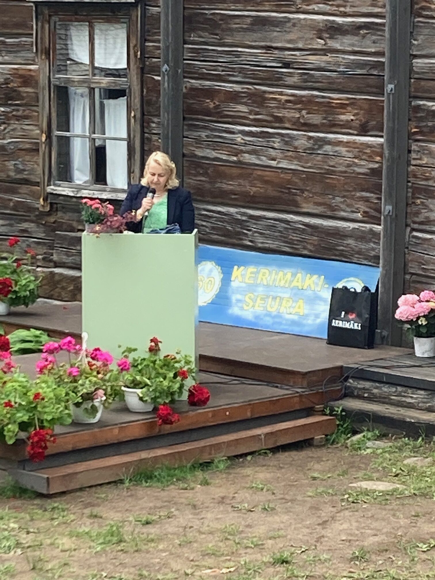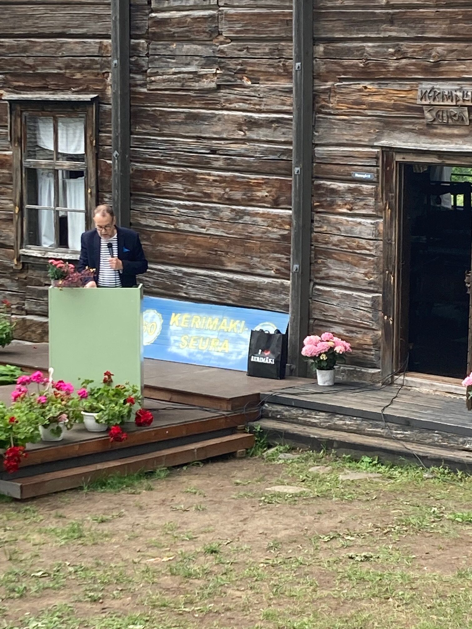 Kerimäki-päivä pidettiin tänä vuonna Kotiseutu-museon alueella. Juhlapuheen piti Etelä-Savon Liikunta ry:n aluejohtaja Mari Makkonen, joka kiteytti liikunnan merkityksen terveydelle, että mikään pilleri ei korvaa liikuntaa. Lauluesityksistä vastasi tänä vuonna Kerimäen Naislaulajat hienoilla esityksillään. Kerimäki-isäntä valittiin 16. kertaa. Uusi Kerimäki-isäntä on Vesa Pulkkinen . Kuvassa väistyvä isäntä, Kerimäki-seuran puheenjohtaja uusi Kerimäki-isäntä ja jatkava Kerimäki-emäntä. Pääkantasäätiö nimesi tämän vuoden kesäkerimäkeläiseksi Heikki Malisen, joka puheessaan kehujen lisäksi valoi uskoa Kerimäen paikkakunnan tulevaisuudelle. Tilaisuudessa piti puheenvuoron Kerimäen Historiaseuran puheenjohtaja Matti Rautiainen historiaseuran tavoitteista. Kerimäen sanataideryhmä esitteli uunituoretta antologian kirjaansa, jonka julkaisemista Kerimäki-seura on tukenut.